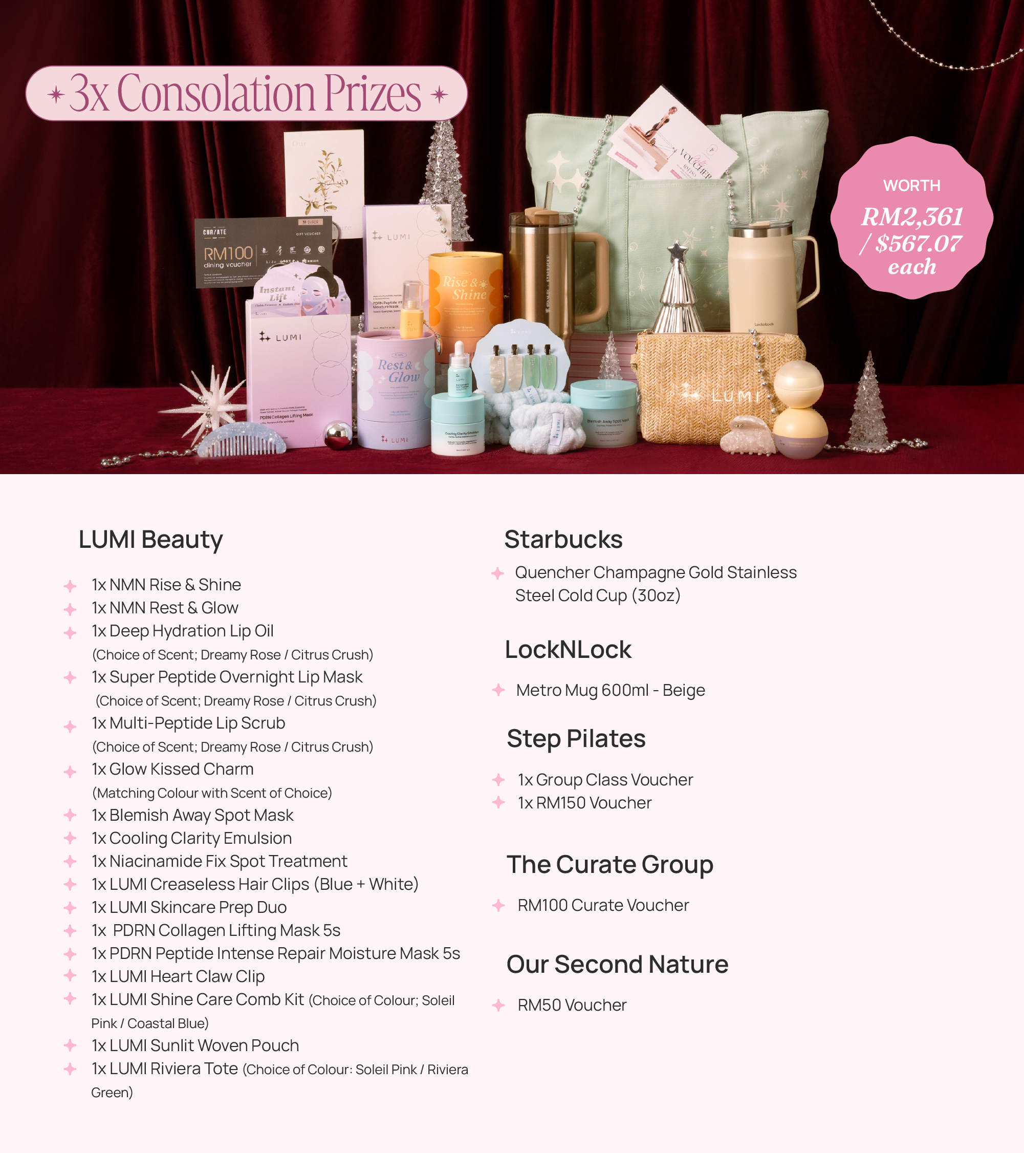 3x Consolation Prizes (worth RM2,361 / $567.07 each)