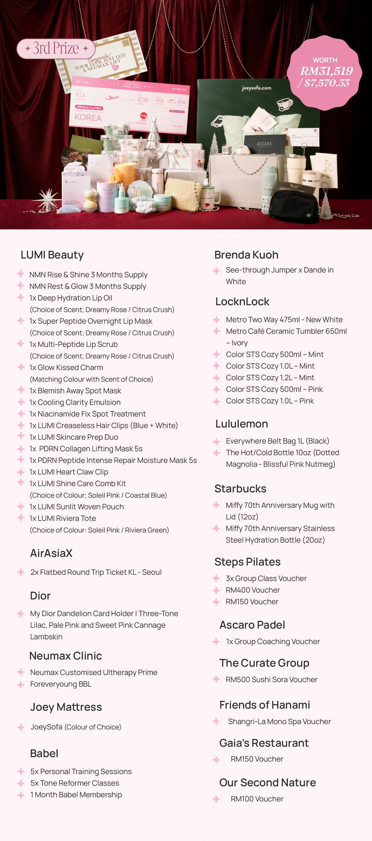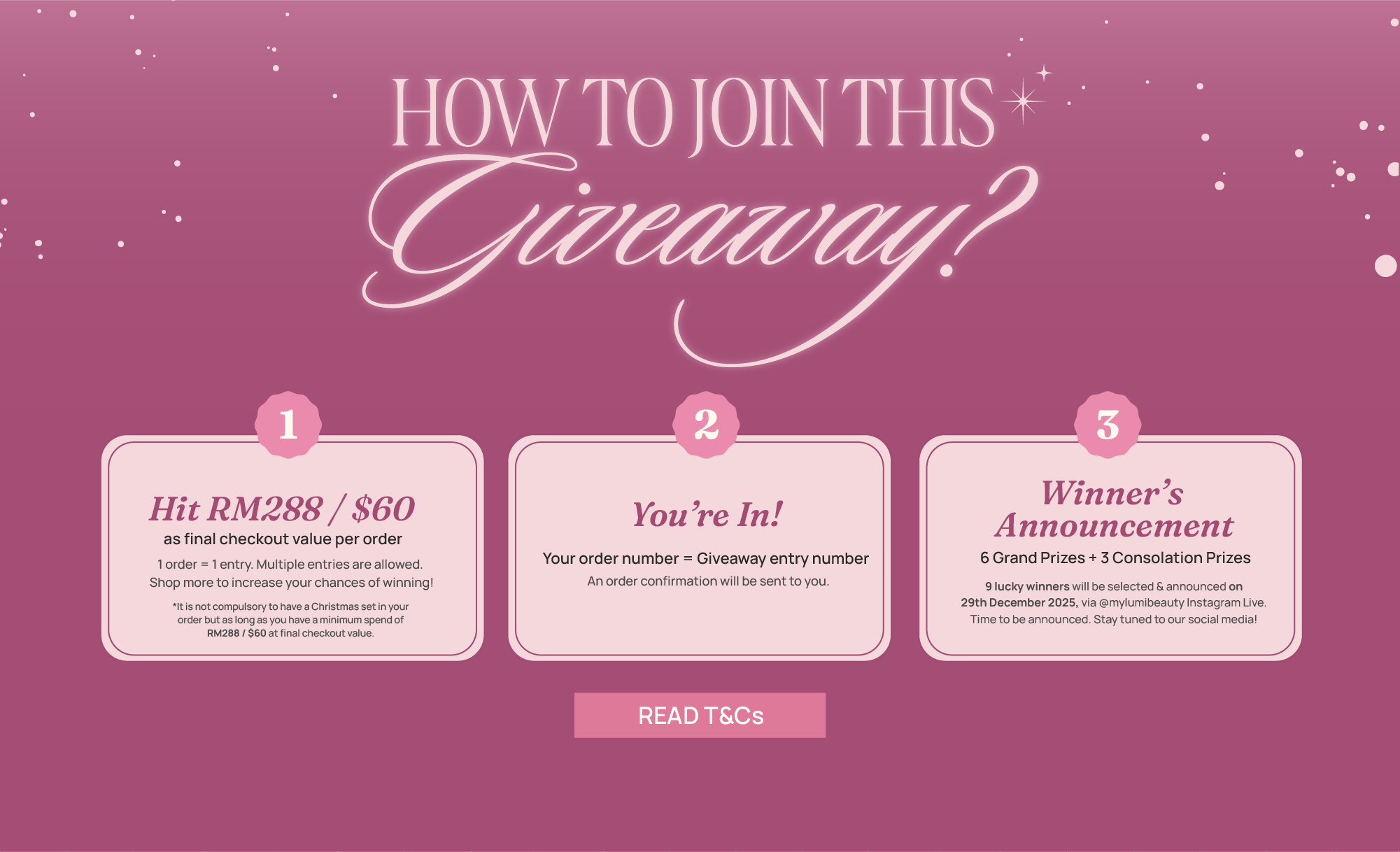 The giveaway will end on 11:59pm (GMT+8), 24th December 2025, and the winners will be announced on 29 December via @mylumibeauty Instagram Live. Time of the livestream will be announced soon so stay tuned to our social media platforms!