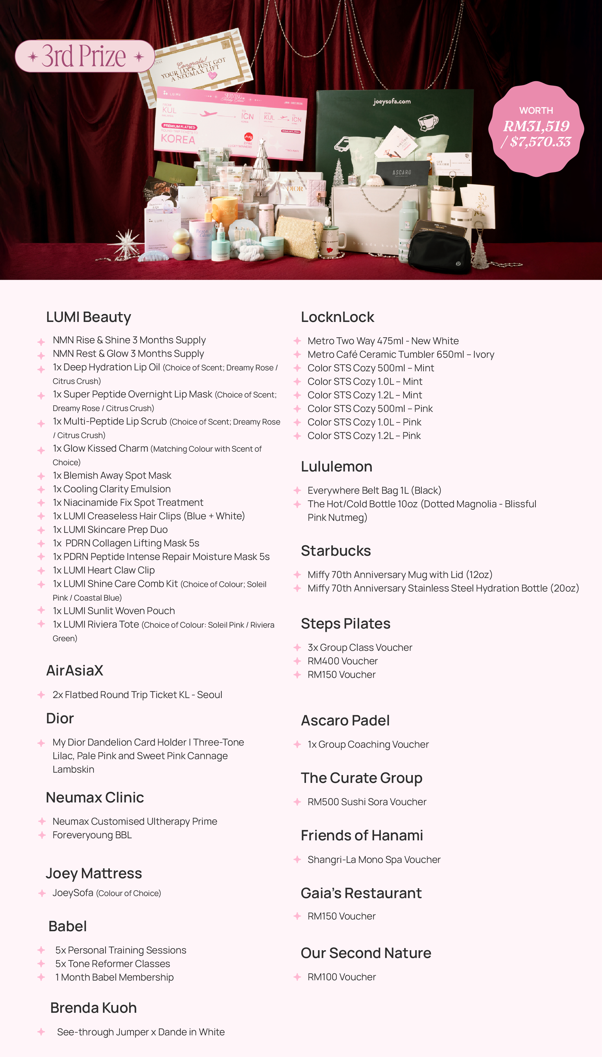 - Step Pilates: 1x Group Class Voucher & 2x RM150 Voucher