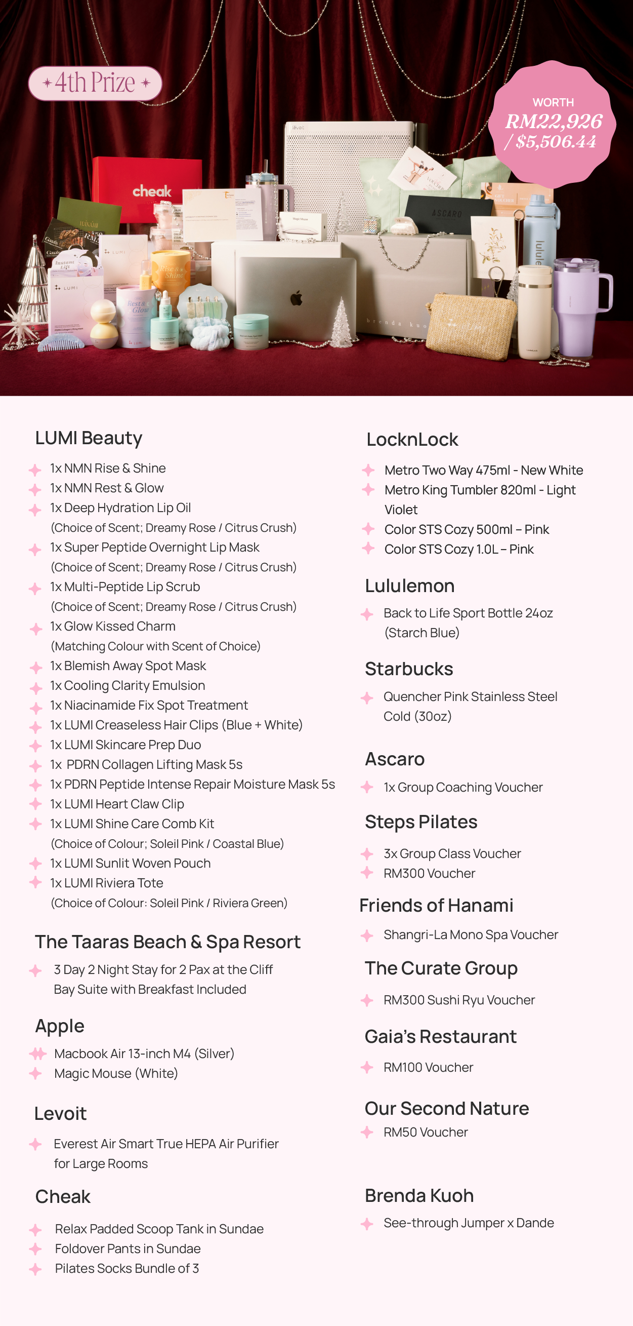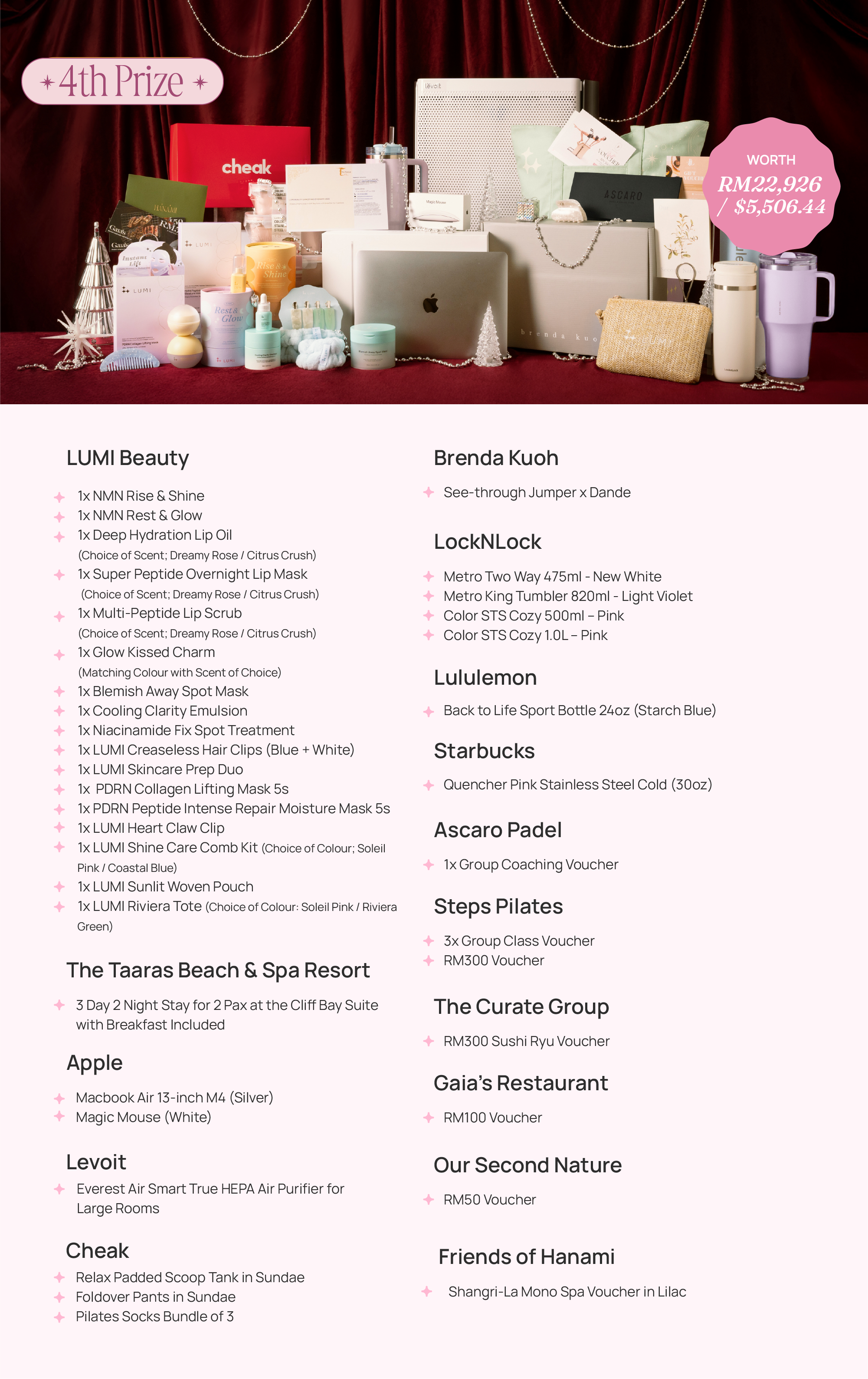 - Steps Pilates: 4x Group Class Voucher, RM500 Voucher & RM150 Voucher