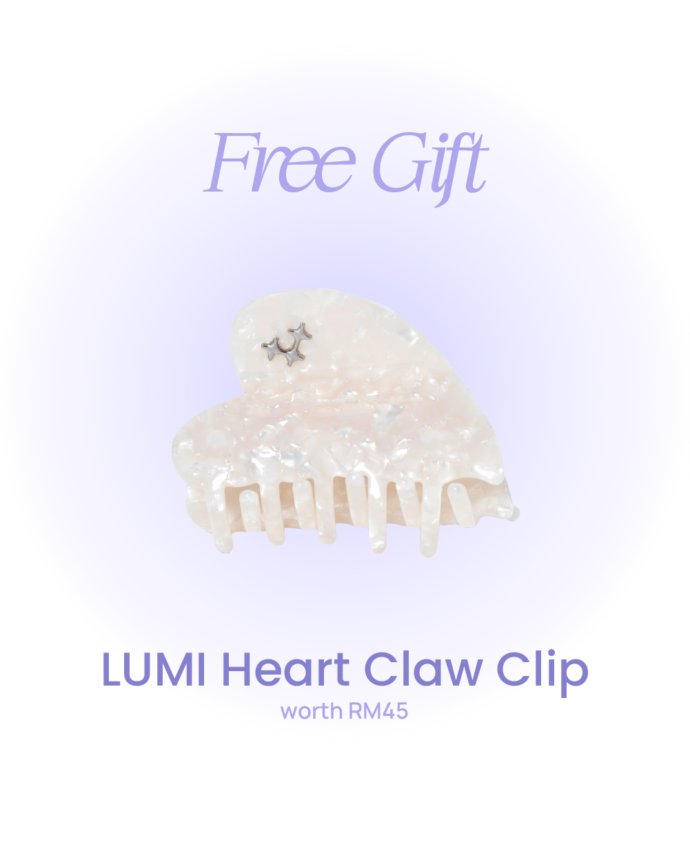 Enjoy 15% savings when you shop the Ageless PDRN Bundle and receive a FREE LUMI Heart Claw Clip RM45!