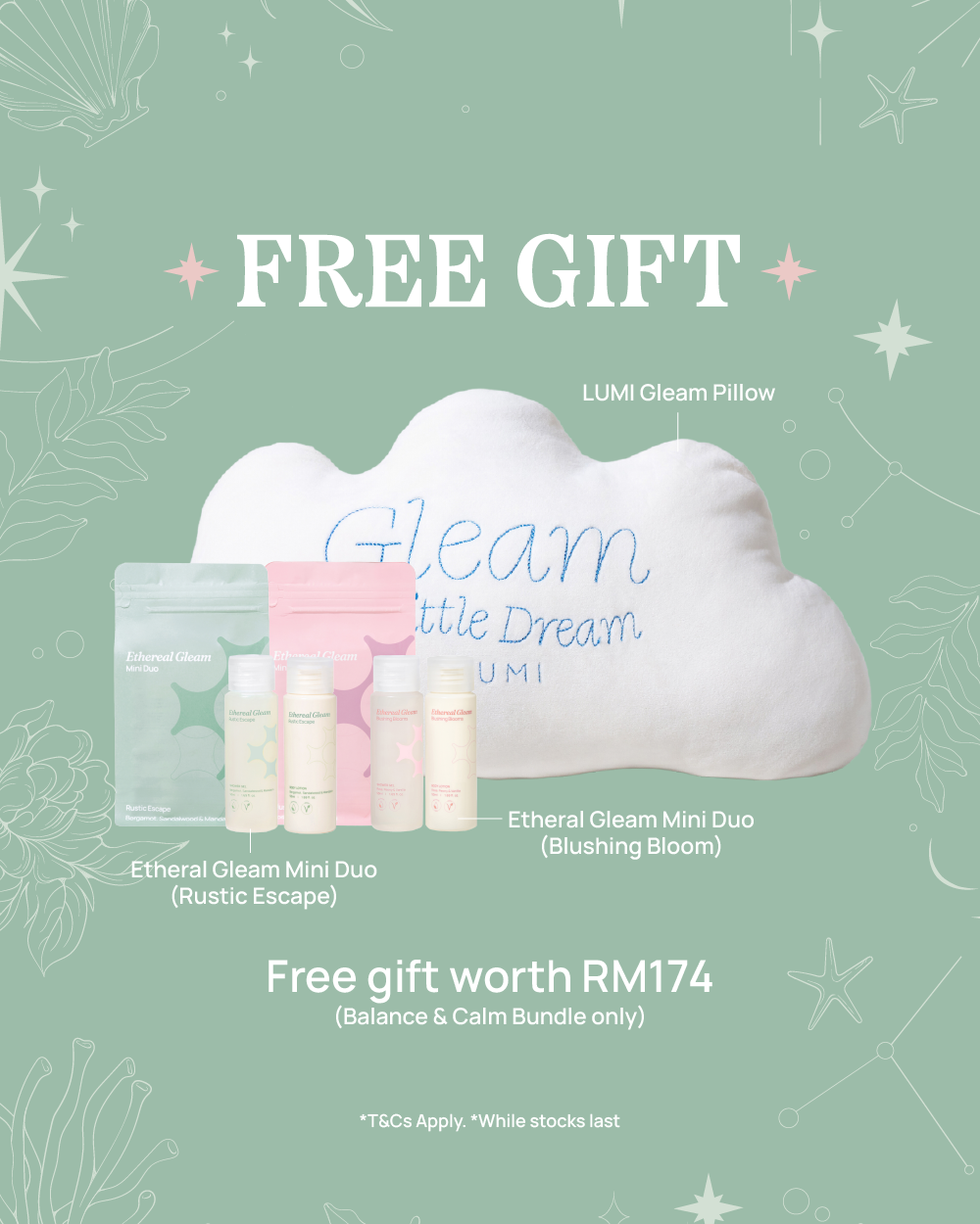 FREE LUMI Gleam Pillow, Ethereal Gleam Mini Duo (Rustic Escape) and Ethereal Gleam Mini Duo (Blushing Blooms) worth RM174.