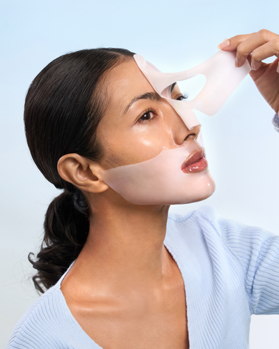 After regular skincare, place the Hydra Collagen Mask on your face and adjust it for a snug fit. Leave the mask on for a minimum of 3 hours or overnight. Seal in the glow with our Bakuchiol Skydew Cloud Moisturizer or Peony Renewal Soft Cream, and finish with Vitamin Glow Mineral Sunscreen in the AM.