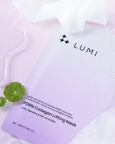 PDRN Collagen Lifting Mask: A 2-piece stretchy microcell mask designed to lift and contour the jawline. Infused with Salmon PDRN, Centella PDRN, Ceramide Complex, Reallagen™ Collagen, and PTD-CollaSome. Best for firming, lifting, and restoring elasticity.